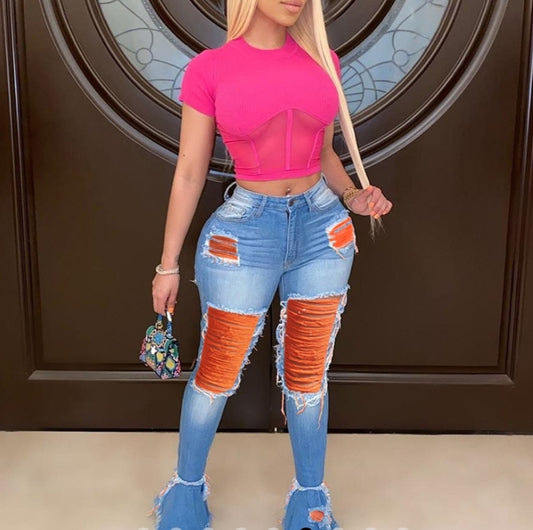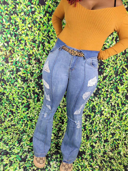 Distressed Denim Fringed Jeans
