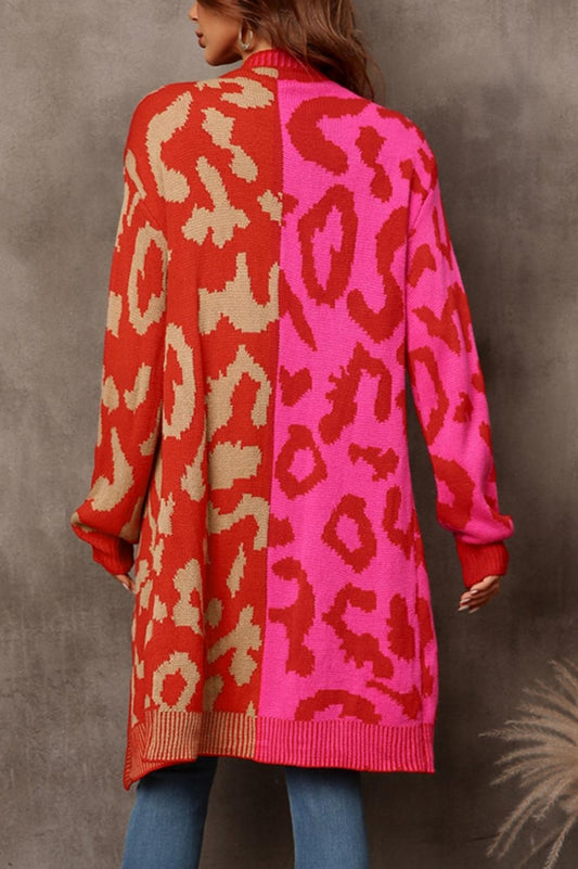 Red/Pink Contrast Leopard Sweater
