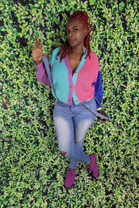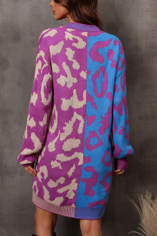 Purple/Blue Contrast Leopard Sweater